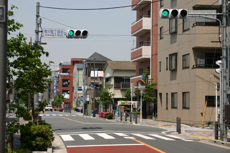 入り、朝日信用金庫東尾久支店を右側に過ぎて1つ目の信号荒川五丁目